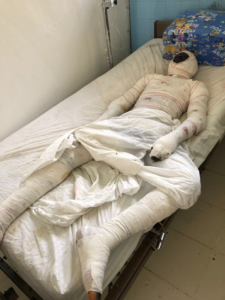 Le centre des grands brûlés du CHU de Cocody accueille quotidiennement de nombreux malades victimes de brûlure. Après soixante-onze jours en salle de réanimation et dix jours d’hospitalisation pour brûlure au gaz butane au second degré, Koudou Yannick est désormais hors de danger. C’est le 08 janvier 2022 au quartier Akabrekoi (Lakota), non loin du corridor que Koudou Yannick a subi les effets d’une bouteille de gaz butane, à la suite d’une explosion. Le samedi 08 janvier dernier, Koudou Yannick rend visite à son ami dans un magasin situé dans la cour familiale et géré par un de ses amis. Alors que les deux jeunes étaient entrain de causer, explose une bouteille de gaz. La porte se referme sur eux. Comme par miracle la porte qui s’était fermée sur les deux jeunes s’ouvre. Ce qui permet aux voisinages d’entrer dans le magasin déjà en feu afin de les secourir. Koudou Yannick est méconnaissable parce que brûlé au second degré. Après des soins à l’hôpital général de Lakota, les médecins ordonnent son transfèrement sur Abidjan. Ce qui sera fait, le 11 janvier 2022, au CHU de Cocody, centre des grands brûlés. « Dès notre arrivée au CHU, certains maladeset des médecins nous ont fait savoir que l’enfant ne pouvait pas survivre plus d’une semaine. Son cas était extrême. J’ai failli me décourager mais la présidente de l’ONG Mme Otété Rosine et une dame que j’ai rencontrées dans la cours dès mon arrivée m’ont donné espoir ». Quant à l’autre, il sera gardé à Lakota pour des soins à l’indigénat, faute de moyens financiers des parents. Transféré quelques jours après la venue de Yannick au CHU de Cocody, il sera à son tour évacué au CHU de Cocody. Après 81 dans le centre, Koudou Yannick est sortie du centre plus en forme que lors de son hospitalisation. Sa mère et la présidente de l’Ong SAV qui a suscité l’élan de solidarité autour du jeune Yannick remercient toute la Côte d’Ivoire. « Je voudrais exprimer ma reconnaissance au peuple de Côte d’Ivoire et leur dire merci pour leur soutien dans tous les sens et leur prière», a insisté la génitrice de Yannick. « Des personnes anonymes ont fait parler leur cœur. Je leur dis tous merci. Je dis grand merci à l’ONG SAV qui a tout fait. A Mulukuku DJ qui, dès qu’il a vu la vidéo, l’a partagé et est venu au centre des grands brûlés voir l’enfant. Il a payé l’ordonnance que nous avions sous la main et qui s’élevait à 195.000F. Je n’oublie pas MM. Koné et Mambo, Mmes Bamba, Ouattara, la directrice du collège Notre Dame du Plateau, sœur Marceline, son personnel et tous les élèves du collège, une dame anonyme qui a envoyé 50.000F, une autre qui m’a remis 15000 F dès notre arrivée au centre. Merci à tout le monde et mes excuses à ceux que je n’ai pas cités. Je n’oublie pas tout le corps médical du centre des grands brûlés. Son médecin traitant, les infirmiers. Ils ont été à nos petits soins. Egalement le ministère de la Solidarité et de la lutte contre la pauvreté », a confié la mère du jeune brûlé, Mme Désirée Koudou. Depuis, le lundi 28 mars dernier, Koudou Yannick a rejoint sa famille à Yopougon. « Sa santé s’est améliorée. Chaque deux jours, il a rendez-vous au centre pour les soins. Ce qui nécessite des moyens de déplacement sans compter les ordonnances. Les médicaments pour les soins des grands brûlés coûtent excessivement chers. La population a fait assez mais nous souhaitons que Yannick continue le traitement à la maison. Nous avons encore besoin de soutien », lance la mère du jeune brûlé. « N’eut été l’apport des populations Ivoiriennes je n’aurai pas pu », lance-t-elle. La présidente de l’ONG se félicite de l’élan de solidarité des populations Ivoirienne et des personnes vivant hors de la Côte d’Ivoire. « La guérison de Yannick est un miracle de Dieu. Il avait été déclaré mort mais Dieu l’a ressuscité. Je remercie la population, le ministère de la Solidarité et de la lutte contre la Pauvreté, l’artiste Dj Mulukuku , C’Midi (RTI) , Femmes d’ici et d’ailleurs , Hassan Hayek, Aurelie Eliam, Cheick Yvhane, et les personnes de bonne volonté qui ont bien voulu apporter leur soutien,tout le corps médical du centre des grands brûlés, les personnes anonymes qui par leur prière, leurs soutiens financiers, spirituels et moraux ont permis que ce gamin retrouve la guérison. Grâce à leur soutien nous avons pu recueillir plusieurs millions de F CFA pour sauver la vie de ce jeune homme», a expliqué la présidente Mme Otété Rosine.