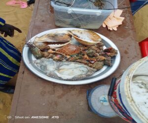 Outre les prestations d’artistes, le festival a permis d’exposer quelques fruits de mer dont les crabes poilus, les calamars, les langoustes, (…). La dégustation des mets du terroir Essouma…