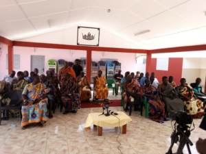 Les échanges avec les journalistes se sont déroulées dans la cour royale en présence du roi d’Assinie, SA Majesté MOSSOU V, MM. Kouamé Célestin (chef du village de Man-Man), Abizi Miezan Pasacal, (chef du village de Akpagne), Azanin Michael (chef du village de Afforenou), Kassi Assoumou (Assinie France),Eboué Koffi, Ano François (chef de village d’Angboudou), Aduluye Kouassi (chef du village d’Affourenou-Poste), Kadjo Koffi (Angboudou), Niamkey Assalé, Avi Kacou ( propriétaire terrien à Kacoukro-Lagune)….